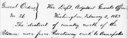 Before witnesses began, Thomas Ewing, lawyer for Dr. Mudd, Samuel Arnold, and Edman Spangler, offered into evidence General Orders No. 26 dated February 2, 1863. These orders from the War Department established the borders of the military district known as the Department of Washington.