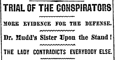The court room was crowded with visitors – and intensely hot, so we stayed but a half hour and during that time only one witness was examined whose testimony seemed to be in Dr. Mudd’s defense. As the trial is nearly through, we will soon know what their fate will be.”[40]