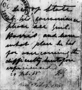 John Potts, chief clerk of the War Department, was asked to look at the letter found by Rev. Ryder and just entered into evidence. Potts testified that he was very familiar with the handwriting of Jefferson Davis as he had served as clerk when Davis was the Secretary of War under President Pierce. Potts stated his belief that the letter contained an endorsement (pictured below) written in Davis’ own hand in which Davis asked Secretary of State Judah P. Benjamin to meet with General Thomas A. Harris, “to learn what plan he has for overcoming the difficulty heretofore experienced.”[18]