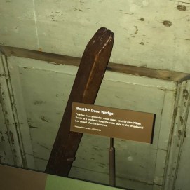 Isaac G. Jaquette, a clerk in the Quartermaster General’s Office, was present at Ford’s Theatre on the night of the assassination. After Lincoln’s removal to the Petersen House, Jaquette gained entry into the Presidential box where you found the piece of wood Booth had used to bar the door laying on the ground near the outer box door. Jaquette testified that he took the bar home, hoping to keep it as a relic. It was later reclaimed by the authorities.[23]