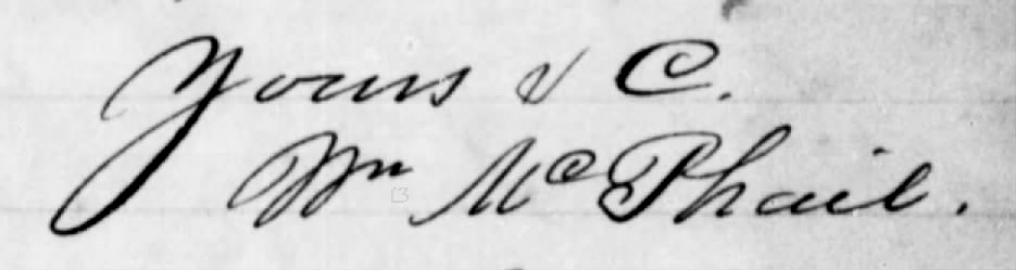 William McPhail, the brother and employee of Maryland provost marshal James McPhail, testified that he was familiar with the handwriting of conspirator Samuel Arnold from when Arnold wrote out a confession on April 18. He was shown the “Sam letter” that had just been entered into evidence and stated that, while the writing was a bit heavier in some places, he believed it was Samuel Arnold’s handwriting.[28]