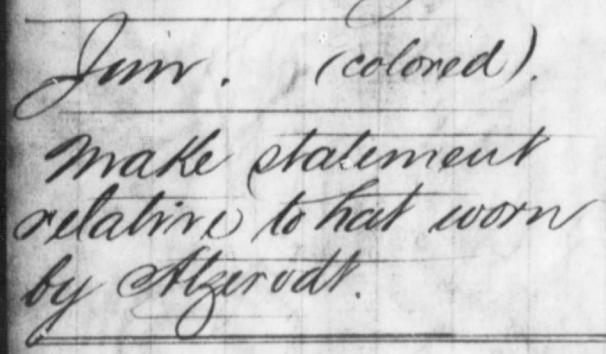 James Walker, an African American employee of the Pennsylvania House hotel, testified about his interactions with George Atzerodt during the early morning hours of April 15th. Walker stated that Atzerodt first came to the hotel on horseback at around 12:30 am, got a drink, and then departed. He returned at around 2:00 am without his horse and Walker had to let him into the hotel, which was locked at that hour. Walker reiterated much of what John Greenawalt, his boss, had testified to the day before regarding Atzerodt’s renting of a room with another man and how both men left early in the morning. Walker was asked by William Doster, Atzerodt’s lawyer, if he recognized the coat found in Atzerodt’s rented room at the Kirkwood House. Though Walker often cleaned off Atzerodt’s clothes for him, he did not recognize the coat. Walker was also asked if he ever saw any weapons on Atzerodt. He stated he had witnessed Atzerodt carrying a knife and pistol in the days prior to the assassination. Walker was shown the knife recovered from the Kirkwood House but could not identify it as the one he saw. He was then shown a different knife which Walker believed looked closer to the one he had seen.[12]