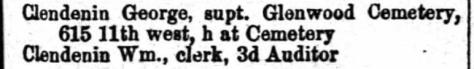 William Clendenin, a clerk in the Third Auditor’s office of the Treasury, identified Exhibit 41, a knife thought to have belonged to George Atzerodt. Clendenin stated that he was walking down F Street on the morning of the assassination when he saw an African American woman pick up something from a street gutter. After making an inquiry, the woman handed the knife and sheath she had found. At that point a woman who occupied a third story residence of a nearby building called out of her window that she had seen the knife and had asked the other woman to go and get it, but now she did not want it in her house. Clendenin offered to take the knife to the police for her, which he did.[13] Fun fact: William Clendenin’s father was George Clendenin, the superintendent of Glenwood Cemetery in D.C.. At times, William worked as a carpenter at his father’s cemetery. In 1869, Glenwood Cemetery would receive the remains of George Atzerodt after the conspirator’s execution. There is strong evidence that Atzerodt was buried in Glenwood but his final disposition is unknown because Clendenin’s father got into legal trouble with the cemetery and absconded with some of the cemetery’s record books which were never returned.