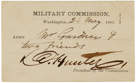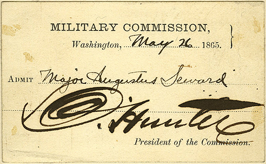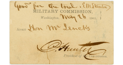 [56] Edwin Stanton, Pass to the Military Commission, May 26, 1865 (Allen County Public Library, Lincoln Financial Foundation Collection).