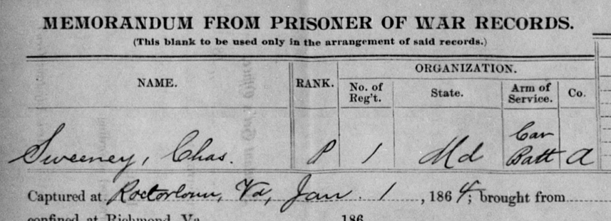 Charles Sweeney, a Union private with the 1st Regiment Potomac Home Brigade Cavalry, was called as a prosecution witness. Sweeney was captured by the Confederates in January of 1864 and testified that during his time as a POW he was imprisoned at Libby, Belle Isle, and Andersonville prisons. Sweeney described the harsh treatment he received at all three of the prisons noting the lack of food provided and the viciousness of Henry Wirz, the Andersonville commandant. Sweeney testified that his own brother died of starvation at Andersonville.[17] Sweeney’s testimony had nothing to do with the conspirators on trial.