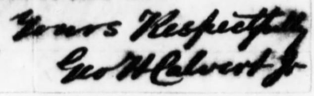 George H. Calvert, Jr., a wealthy landowner living near Bladensburg, Maryland, was recalled, he having previously testified the day before. He was asked to identify the letter he wrote to Mary Surratt on April 12th in which he asked her to settle the debt she owed to him. The letter was identified and read on to the record.