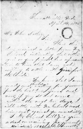 Assistant Judge Advocate Henry Burnett produced two letters in the possession of the government that had been requested by the defense. The letters concerned the debts that brought Mary Surratt to her Maryland tavern on April 12 and 14. Both letters would be entered into evidence over the course of the day.[4]