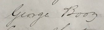 George Booz, an African American resident of Charles County, testified that on the late afternoon of April 15th, he saw and spoke to Dr. Mudd as the doctor was riding from Bryantown back to his farm. Booz stated he lived on a piece of property owned by Dr. Mudd’s father and that Mudd often rode his horse down the farm lane rather than taking the main road to and from Bryantown. According to Booz, Dr. Mudd spoke a few words to him before continuing up the road. Booz stated that he did not see anyone else on the farm road or and main road during his interaction with Dr. Mudd.[19] The point of Booz’s testimony was to counter prior witness Becky Briscoe who claimed to have seen David Herold wait for Dr. Mudd outside of Bryantown.